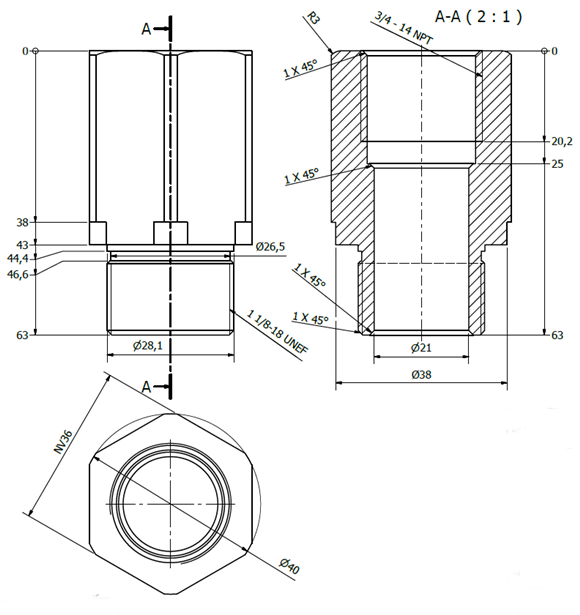 | 1 1/8 UNEF - 3/4" NPT | HBS/ADAP/7/2 |