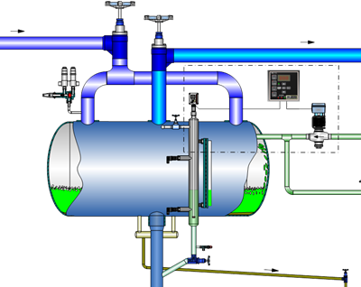 HBLT capacitive liquid level transmitters are used to measure liquid levels in refrigerant vessels. The HBLT transmits an active 4-20 mA signal which is proportional to the liquid level.