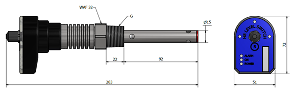 HBSO-SSR-1/xx-x/HT is a high temperature level switch for detecting common lubricating oils in refrigeration systems. The level switch is used for all oil types (PAO, PEO, mineral oil and PAG oil). Typically it is installed in/on the compressor and the oil separator, but it is also suited for installation in other locations in the oil system. The sensor's measurement principle makes it unique for these purposes, since the properties of the measurement principle allows it, among other things, to detect oil without detecting refrigerant. It is calibrated so that it is unaffected by oil spray and only allows a small amount of foam. The sensor is also constructed so as to resist high pressure and temperatures.